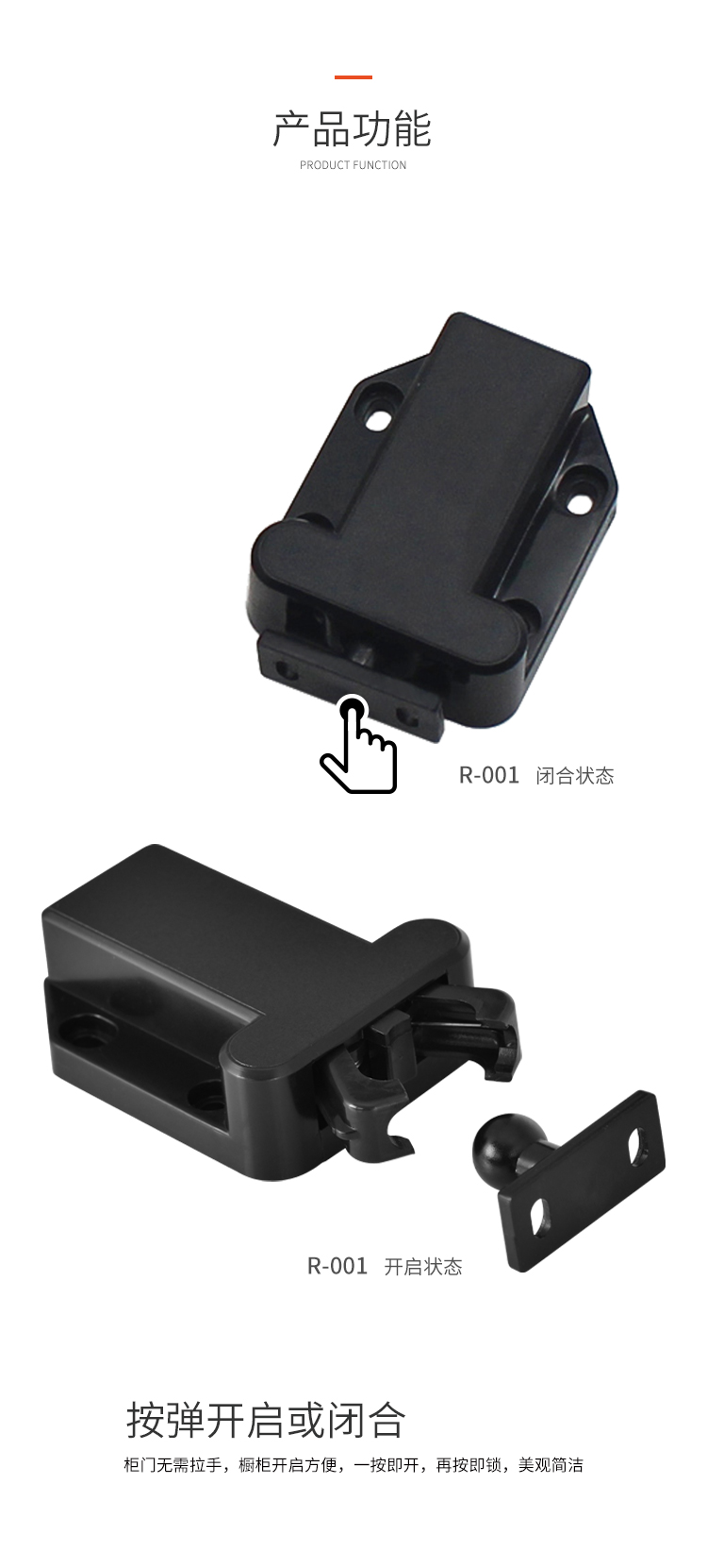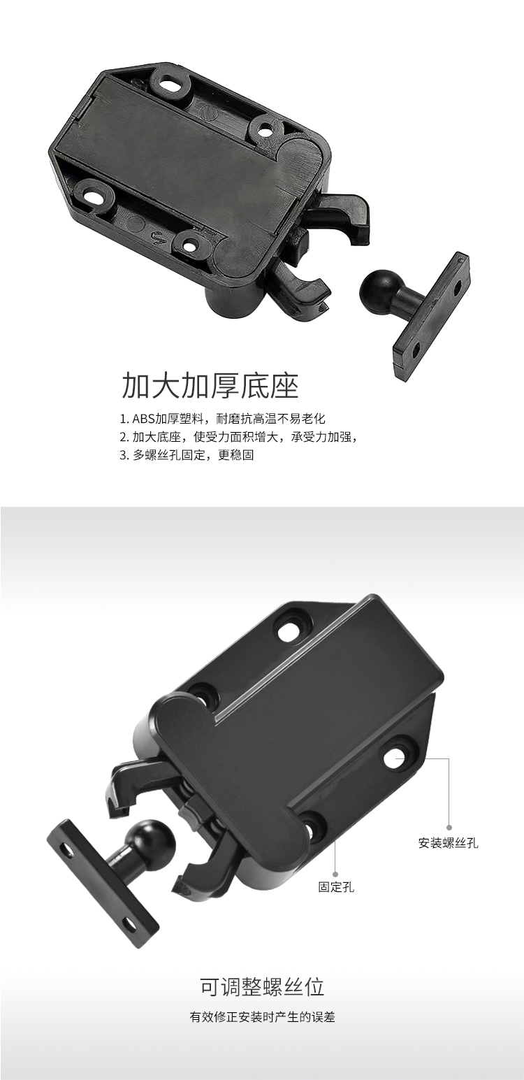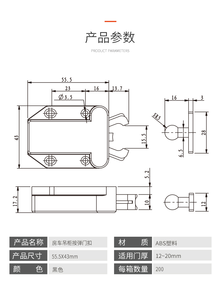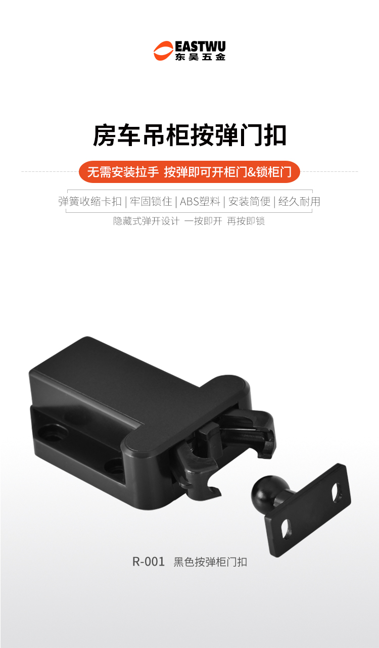 黑色塑料房车吊柜按弹门扣 尺寸55.5X43mm 适用门厚12-20mm