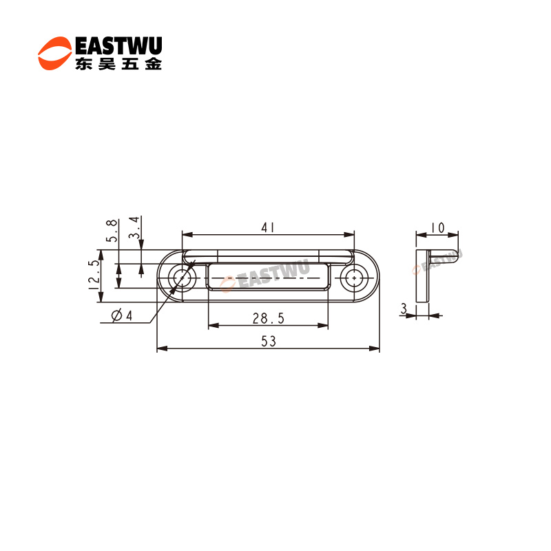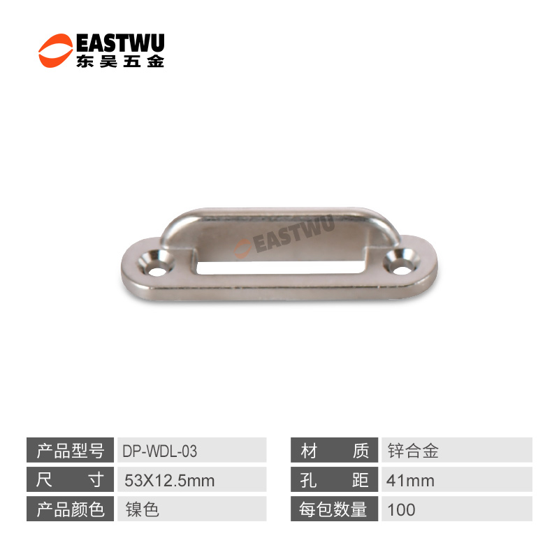 锌合金镍色金属挡片 防撞击 坚固耐用 尺寸53X12.5mm 孔距41mm