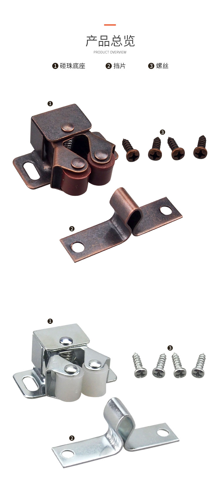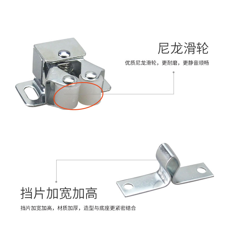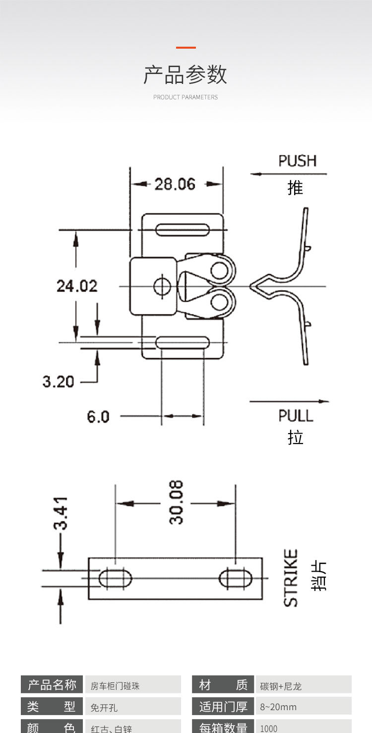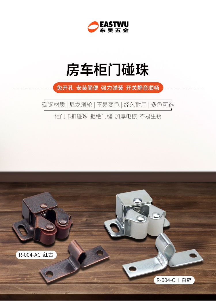 碳钢&塑料房车柜门碰珠 免开孔 有白锌和红古两种颜色 适用门厚8-20mm