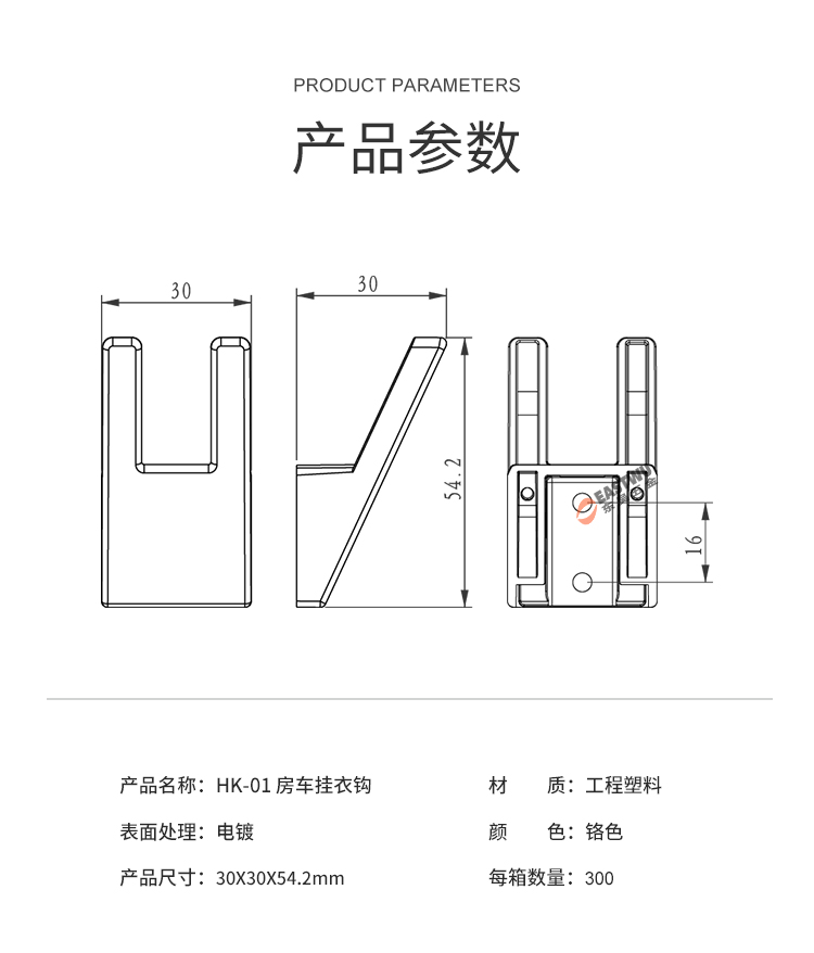 ABS 铬色房车挂衣钩 免打孔 鱼尾设计,防止刮伤 易于悬挂与使用 卡扣设计,车辆行驶或取挂衣物时,不易脱落 尺寸30X30X54.2mm