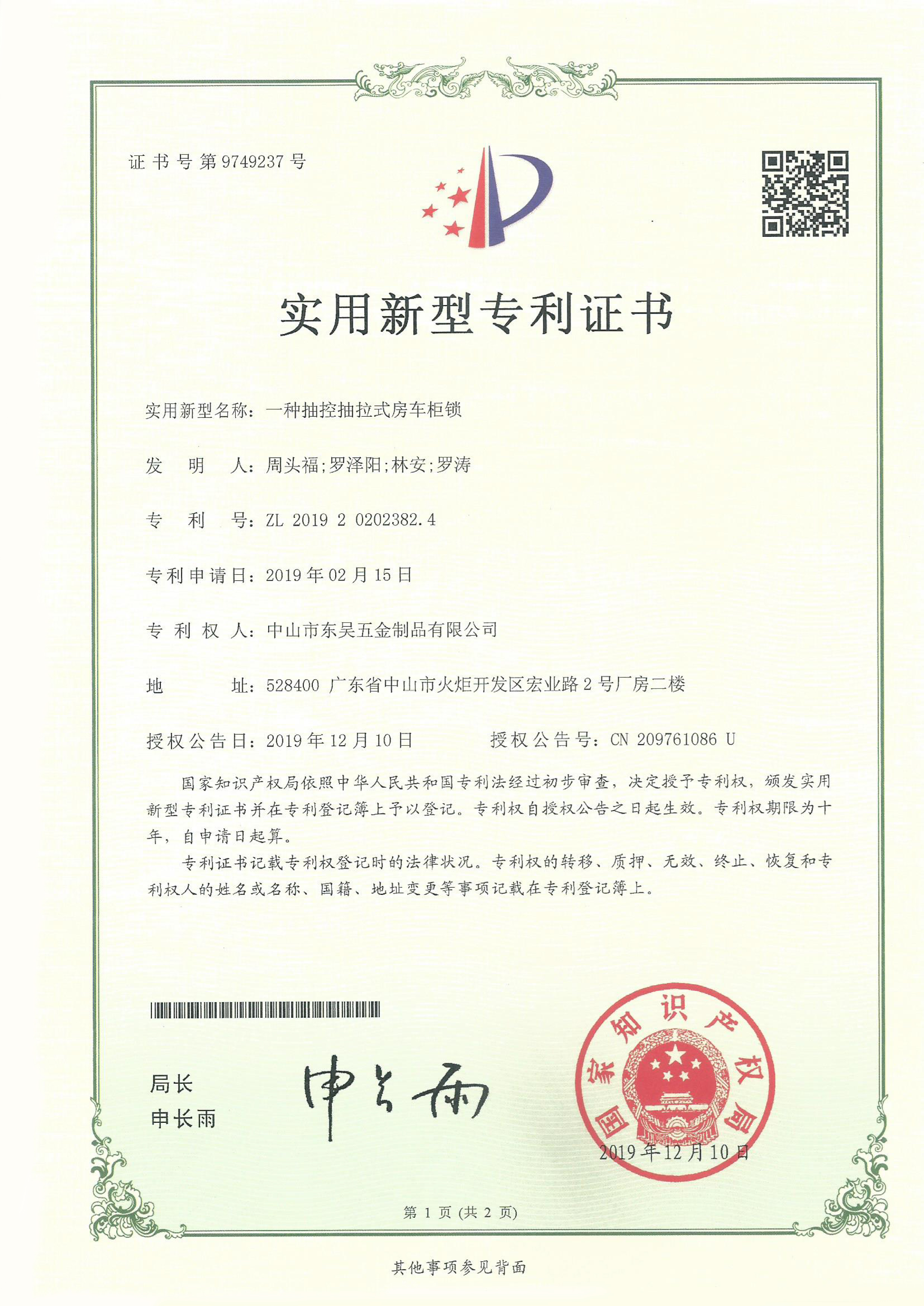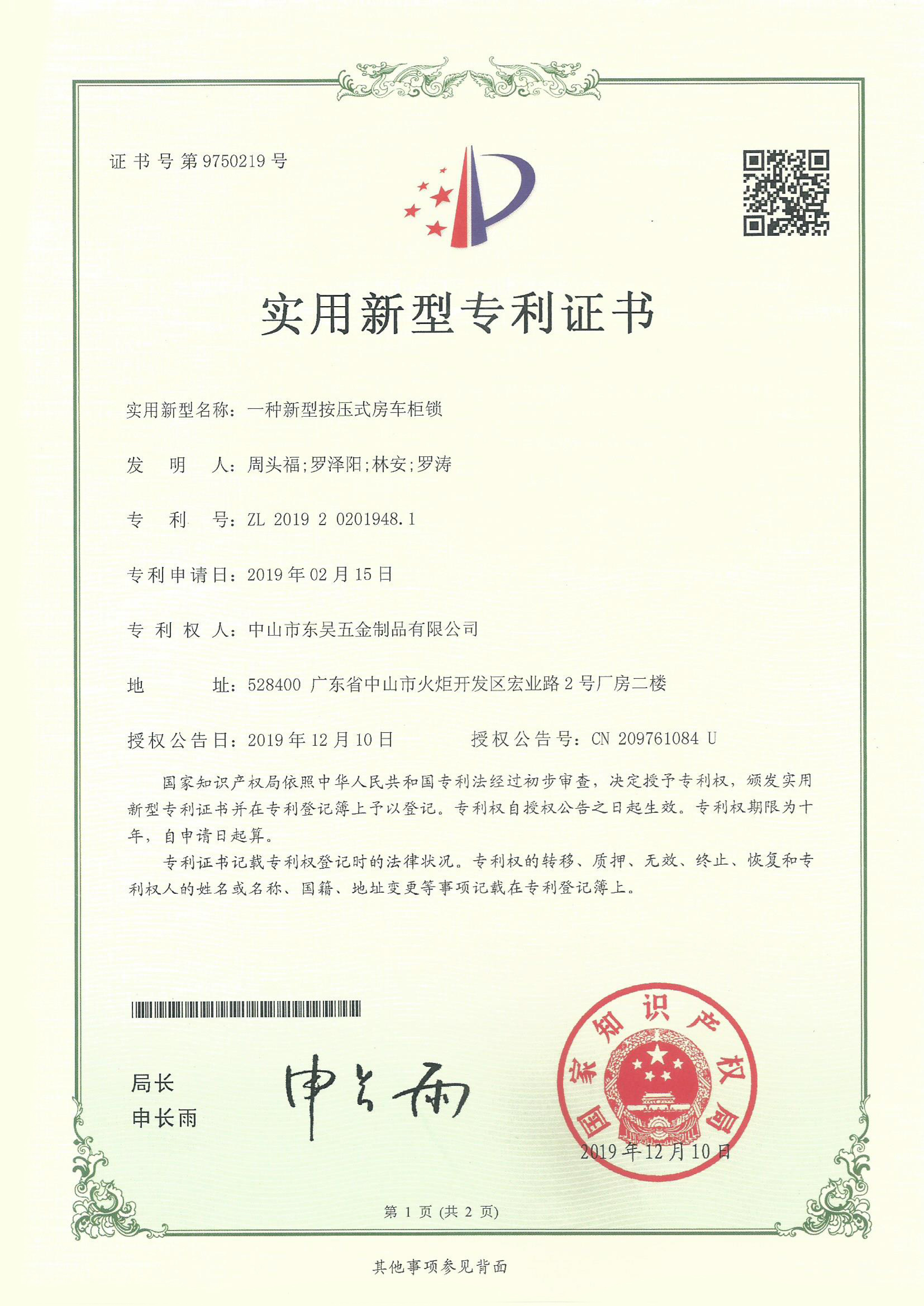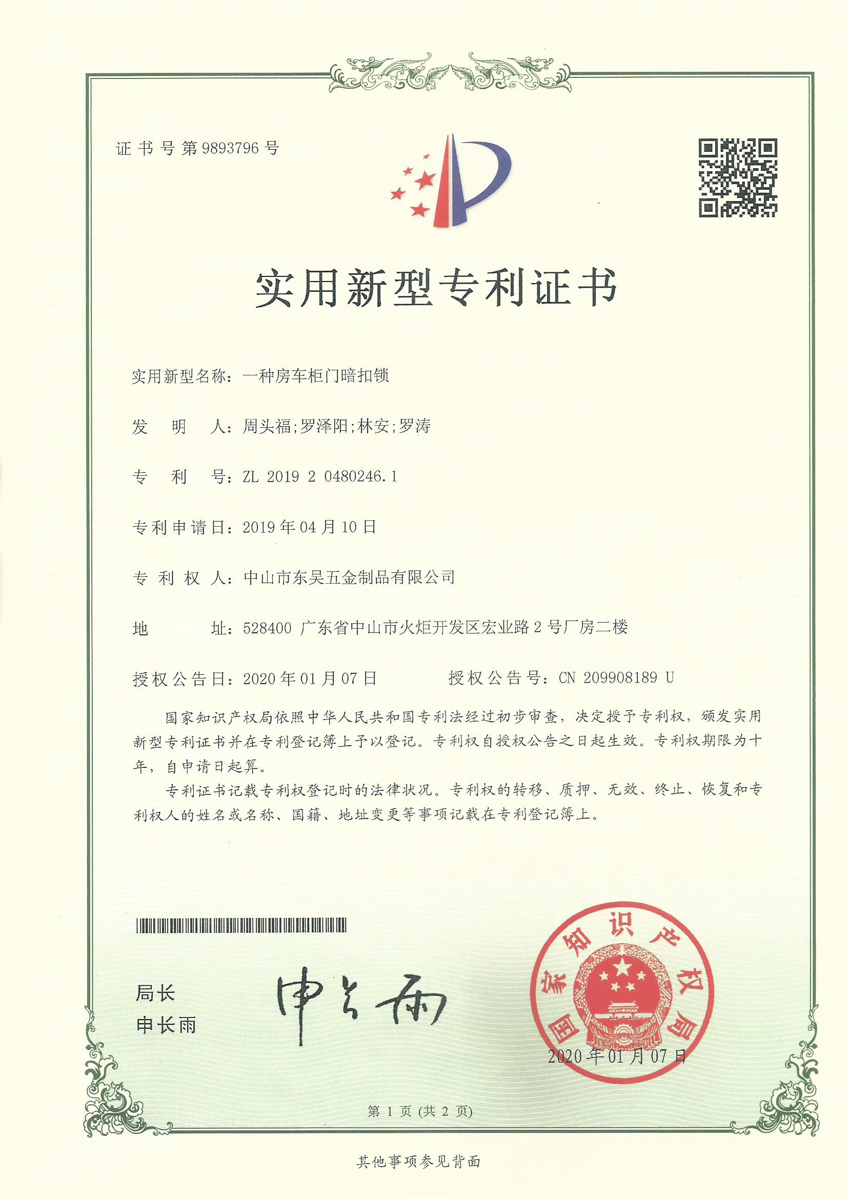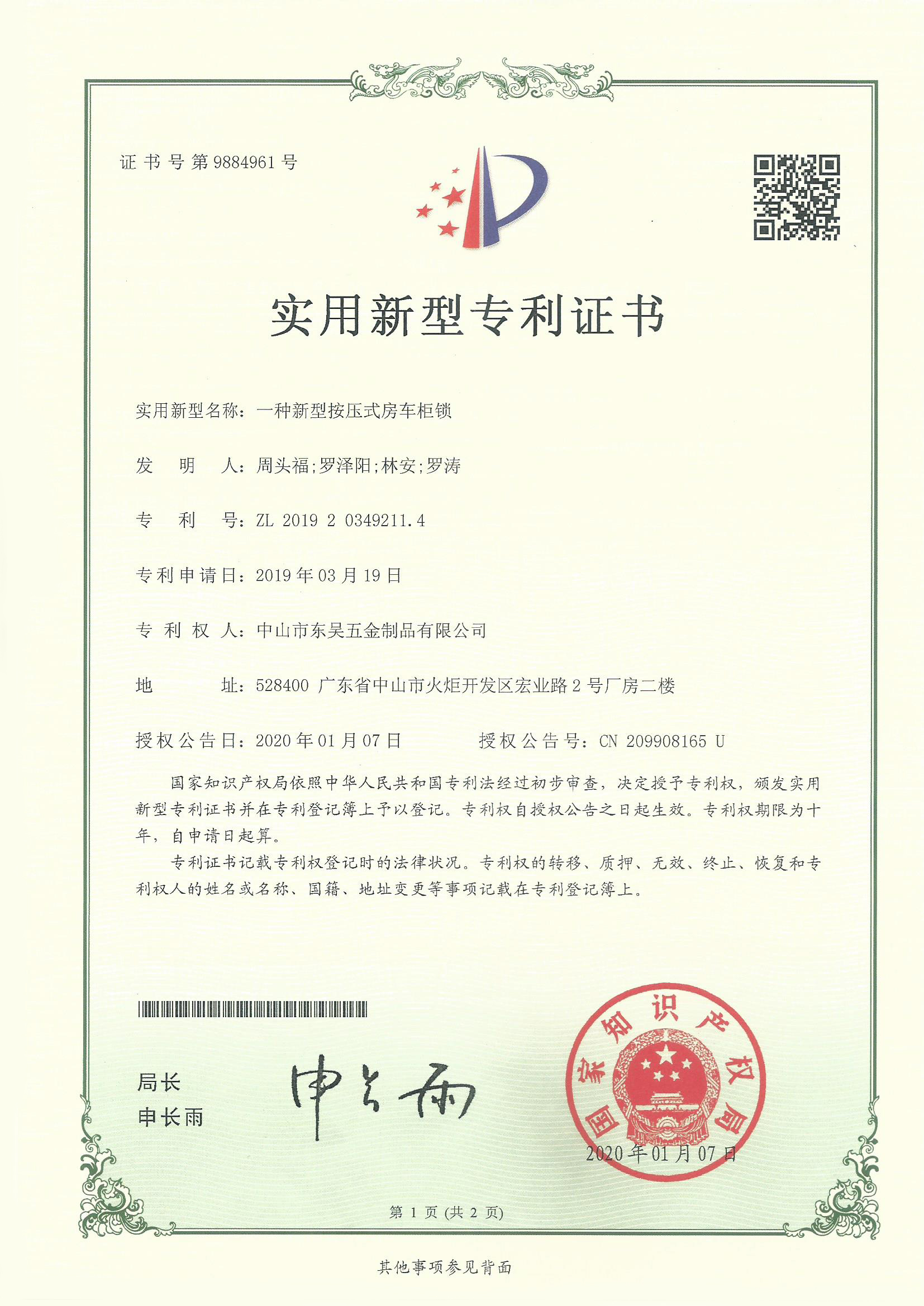 东吴五金制品有限公司是一家集研发、生产、销售为一体的现代化制造企业。生产车间面积超过3500平米,拥有先进的模具制造设备和压铸设备,多位从业10年以上经验的专业素质技术人才。对于功能性、原料的质量和成本的产生都有很严格的标准。产品涵盖了房车家具锁、拖车工具箱锁、洗手间门锁、房车门锁、铰链、滑轨等系列。