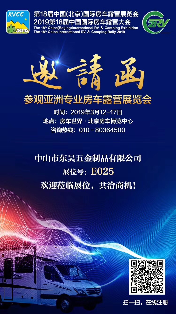 中山市东吴五金制品有限公司参加第18届中国(北京)国际房车露营展览会、2019第18届中国国际房...